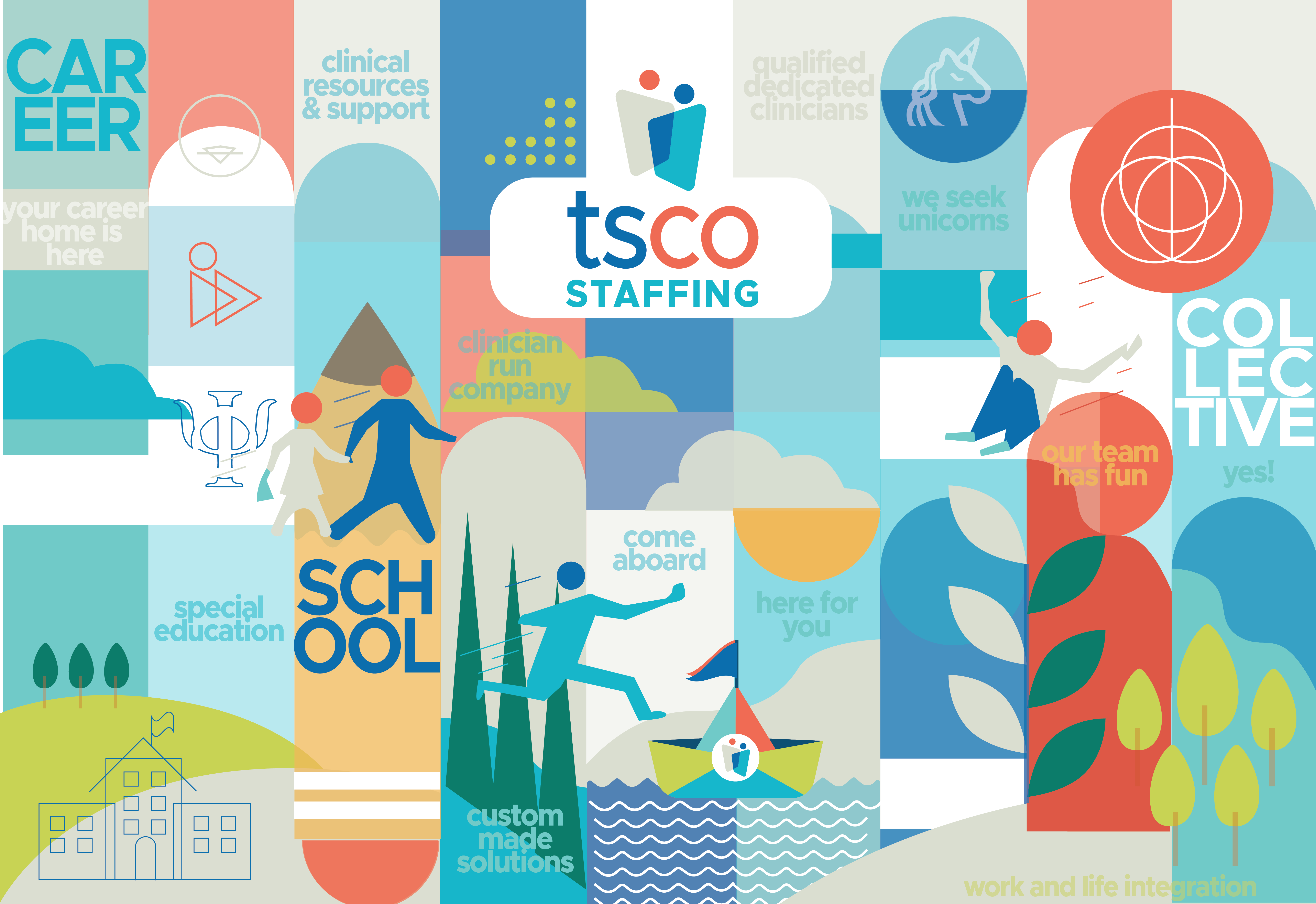 Therapy Solutions Collective (TSCO) is a clinician-run staffing group supporting schools with highly qualified speech-language pathologists, SLPAs, school psychologists, occupational therapists, and physical therapists. Additionally, we support and staff paraprofessionals, special education teachers, BCBAs, and registered behavior technicians. Our Collective is comprised of the most qualified and dedicated clinicians with specific in-depth knowledge and experience in schools based in Oregon, Washington, California, Nebraska, Texas, and Colorado.